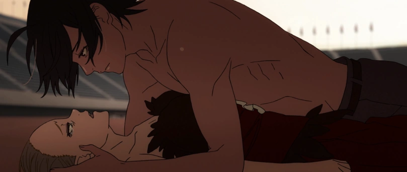 Kiss shot planned on having Koyomi kill her so she could finally find a proper way to die and allow her minion to turn back into a human. The two fight a pointless fight, excessively decapitating their immortal bodies. In the midst of their fight, Tsubasa arrives. Before Kiss shot could harm her, Koyomi jumps on Kiss shot, sucking her blood to the brink of death, but stops. With the help of Hanekawa, they realize her true intentions.